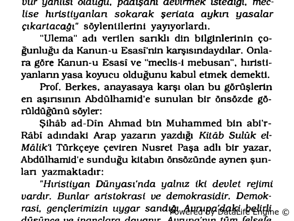 "Bugünlerde Dr. Çağlar Kırçak'ın meşrutiyetten günümüze gericilik adlı kitabını okuyorum. Dr. Kırçak, bu incelemesinde "islamcı terör olmaz" yargısına tarih içinde yanıtlar veriyor. Kitapta, cumhuriyet öncesi ve sonrası şeriatçı akımlar, siyasal çerçevelere oturtularak inceleniyor. bugün şeriatçı akımlar eskisinden daha güçlü. Cumhuriyet kurulduğundan bu yana şeriatçılar devlet içinde hiç bu kadar güçlenmemişlerdi. Dr. Kırçak'ın kitabı, yalnızca önceki günün ve dünün incelenmesi değil, bugünün de aynasıdır."